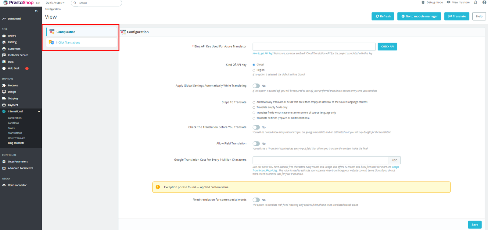 PrestaShop AI OneClick Translate – Bing Edition